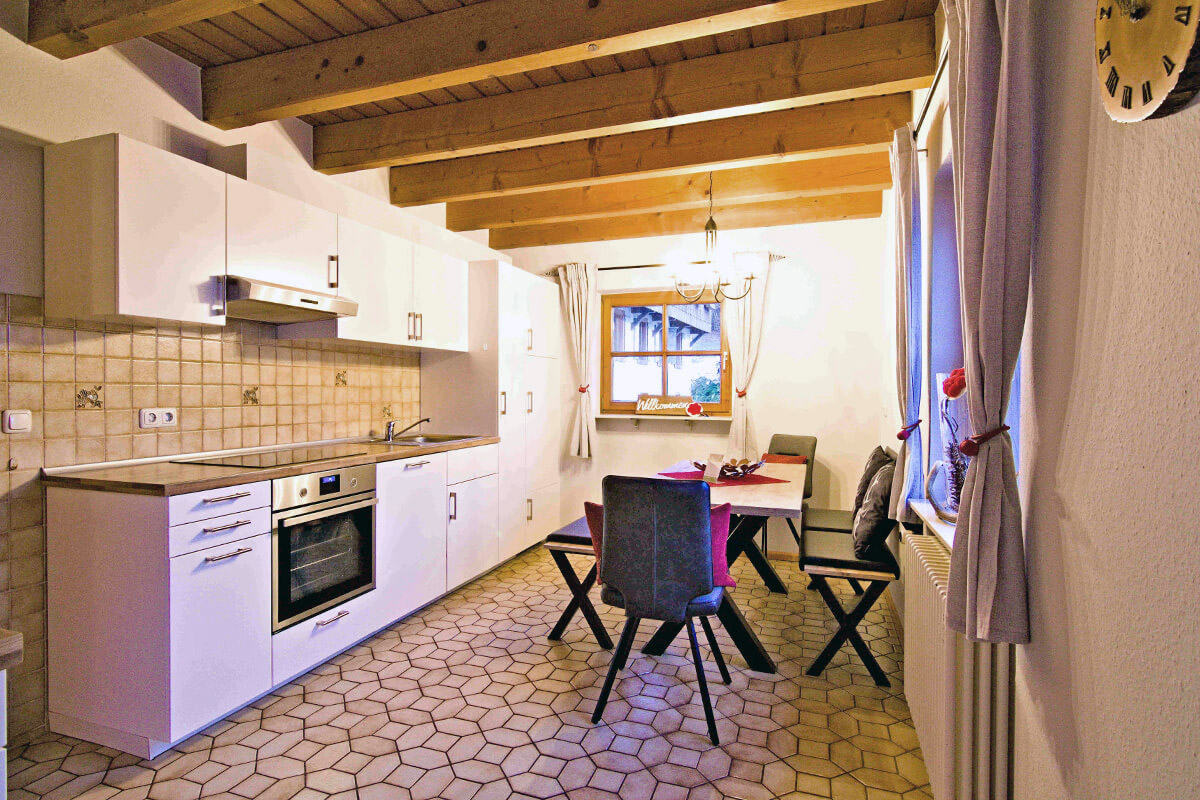 - Voll ausgestattete Wohnküche mit Küchenzeile,