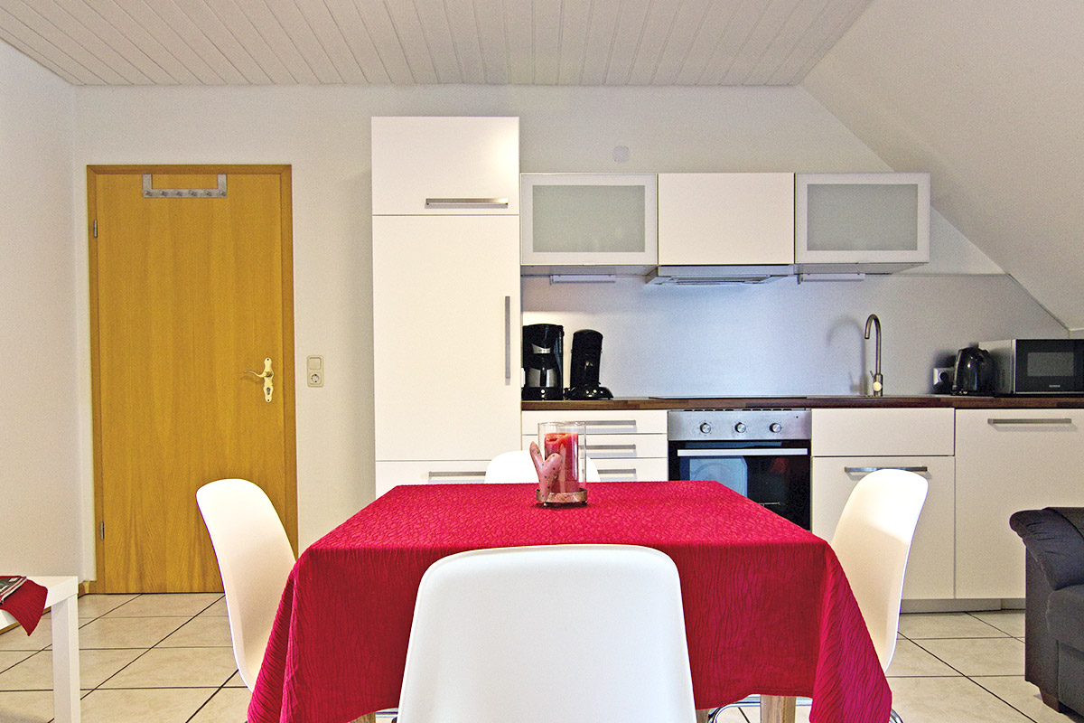 - Wohnküche mit Küchenzeile, Esstisch, Stühle,