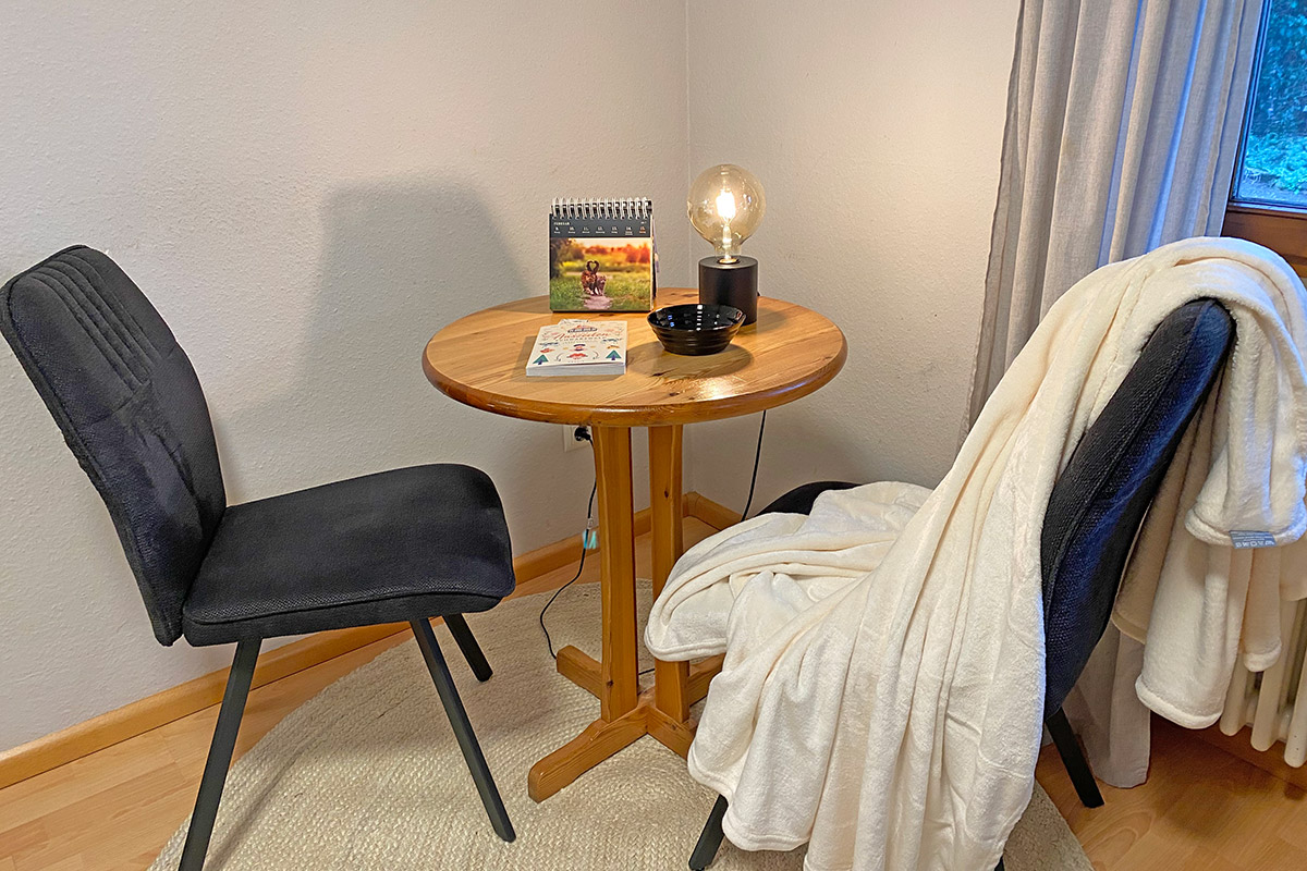 Unser Mini-Appartement ist der perfekte Rückzugsort für zwei Personen, die eine entspannte Auszeit auf dem Ferienbauernhof suchen. Auf 20 m² erwartet dich eine gemütliche, durchdacht ausgestattete Wohnatmosphäre.